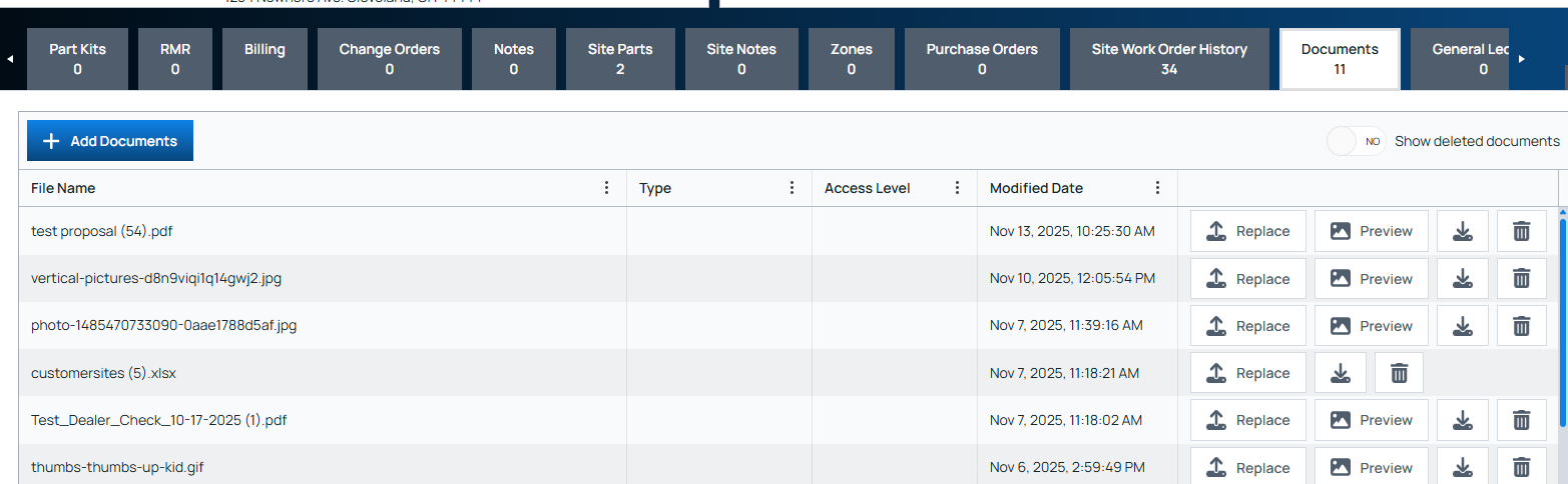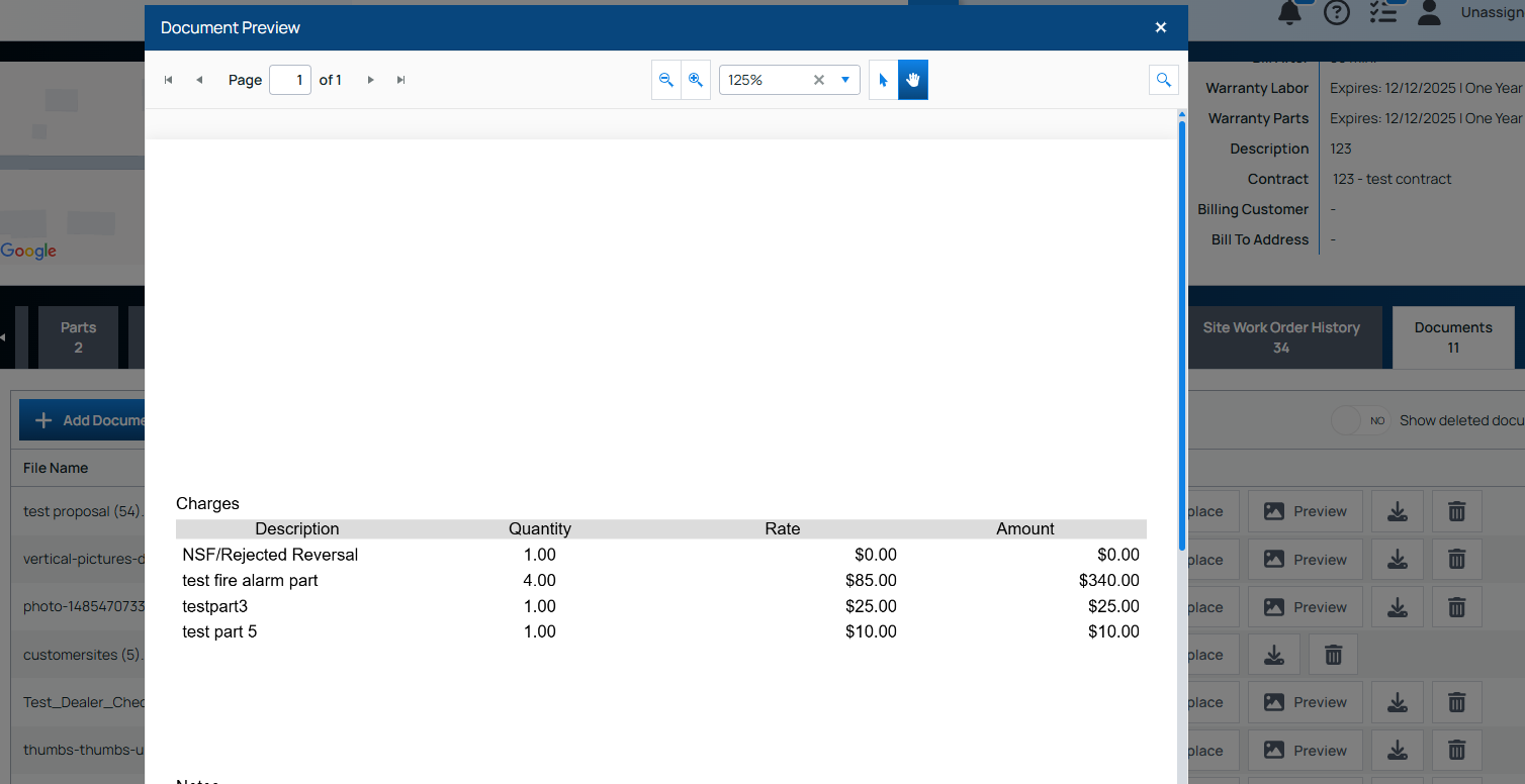 The Documents tab on the work orders page (and any other page that has a Documents tab) has a Preview button next to any file that is a supported image format (.jpg, .png, .webp, .bmp, .svg and .gif):